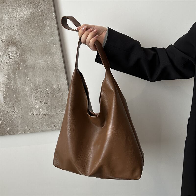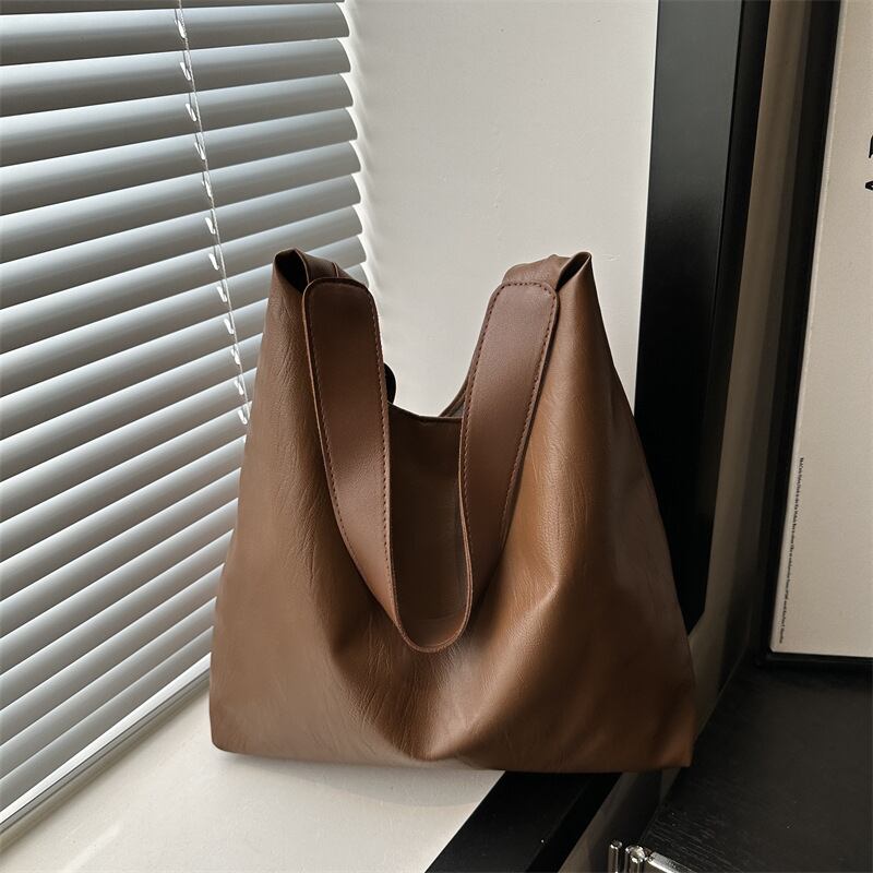 日常使いから通勤・通学まで幅広く対応できる大容量のショルダーバッグ。柔らかく上質なPUレザー素材で、肩にやさしくフィットし長時間の使用でも疲れにくい設計。無駄のないシンプルなデザインが、どんなスタイリングにも自然に溶け込みます。