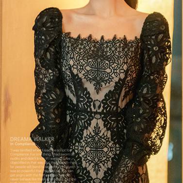 伸縮性のあるレース素材で、ボディラインに優しくフィットしながらも動きやすく快適な着心地。