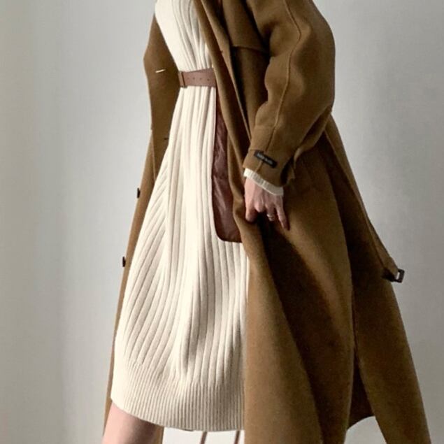 シンプルで柔らかい印象のニットワンピース