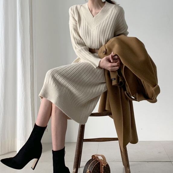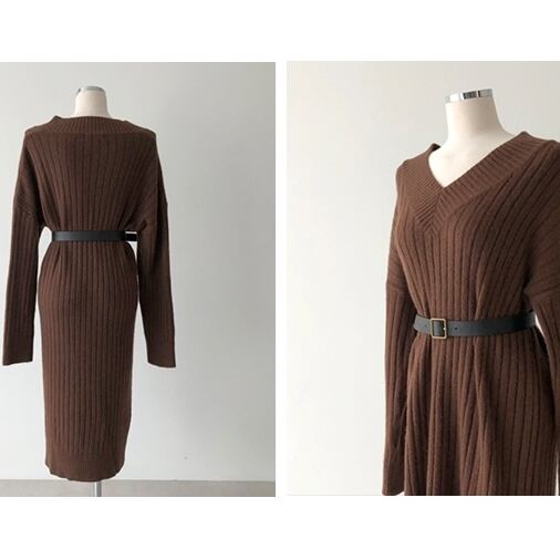 Vネック ニットワンピース  C-OAW1025