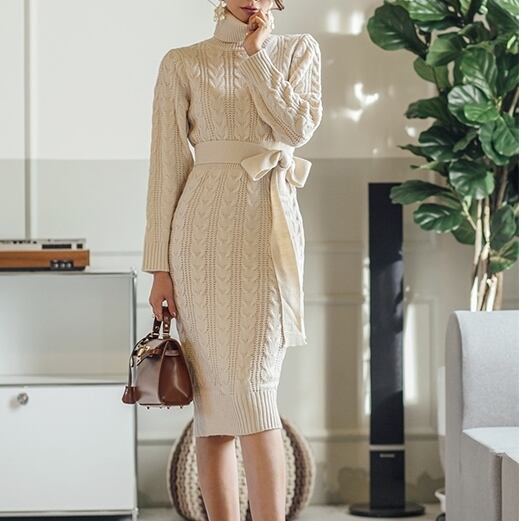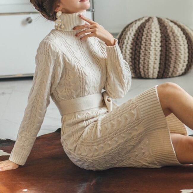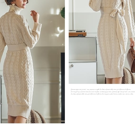 ミドル丈 タートルネックタイトニットワンピース C-OAW1015