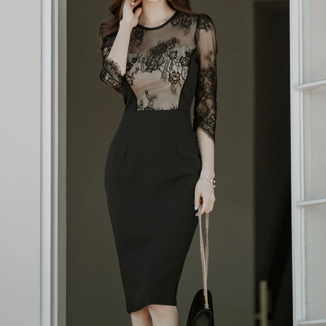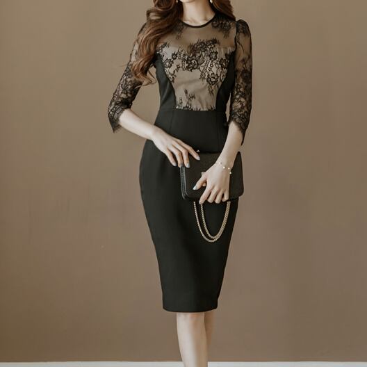ワンピース レディース 春夏 秋冬 春 夏 秋 冬 黒 ドレス タイトワンピース タイトドレス シースルー レース ミディアム丈ワンピース 7分袖 半袖 ドレス ナイトドレス キャバドレス レース ワンピースドレス ひざ丈 ひざ下 ワンピドレス ミモレ丈 ドレスワンピース ミモレワンピース 半袖ワンピース ブラック お呼ばれ 母 ママ OL お呼ばれ パーティー 結婚式 七分袖 10代 20代 30代 40代 C-OSS0093