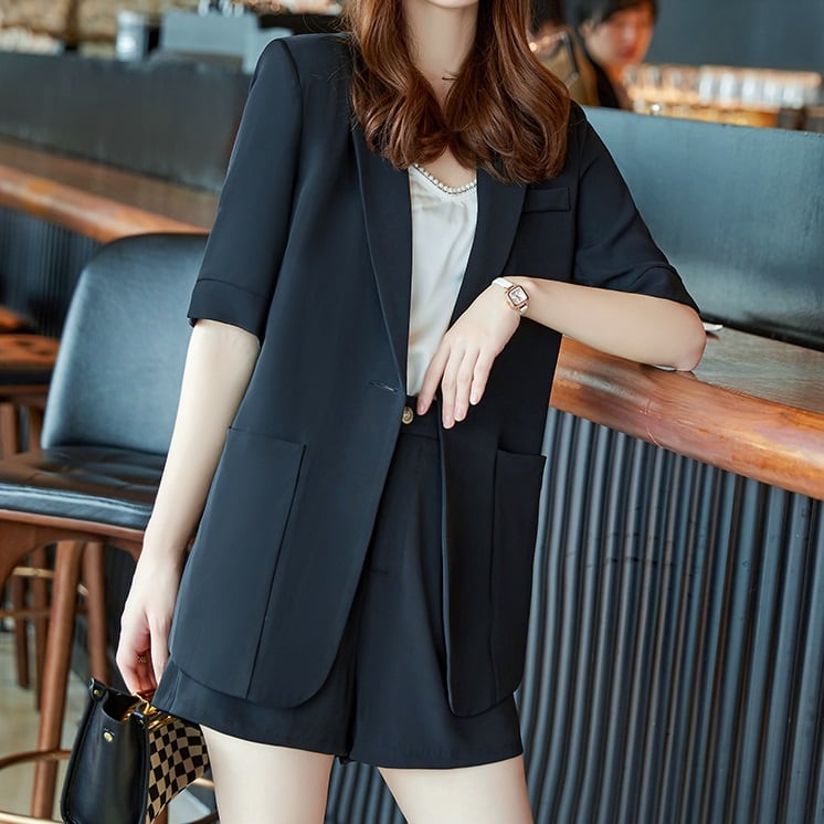 商品名:シンプル 半袖ジャケット&ショートパンツ パンツスーツ セットアップ