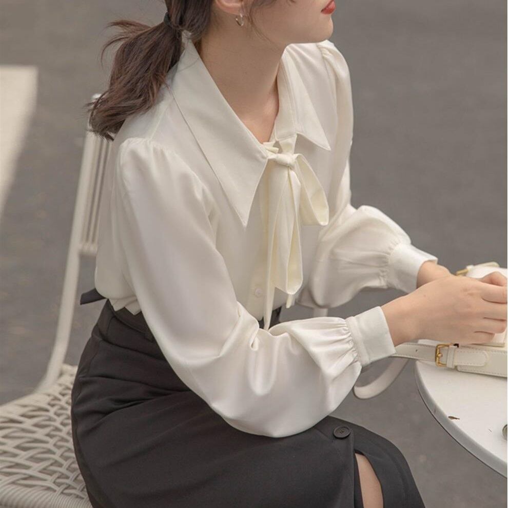 ブラウス レディース 春夏 秋冬 春 夏 秋 冬 白 シャツ トップス ボウタイ 長袖 トップス チュニック 無地 ボウタイシャツ チュニックブラウス ホワイトリボン ボウタイブラウス 韓国 ゆったり ブラウスシャツ シンプル 長袖シャツ ブラウスシャツ こなれ シャツブラウス オフィス カジュアル OL 上品 大人 S M L XL 30代 40代 C-TSS0058