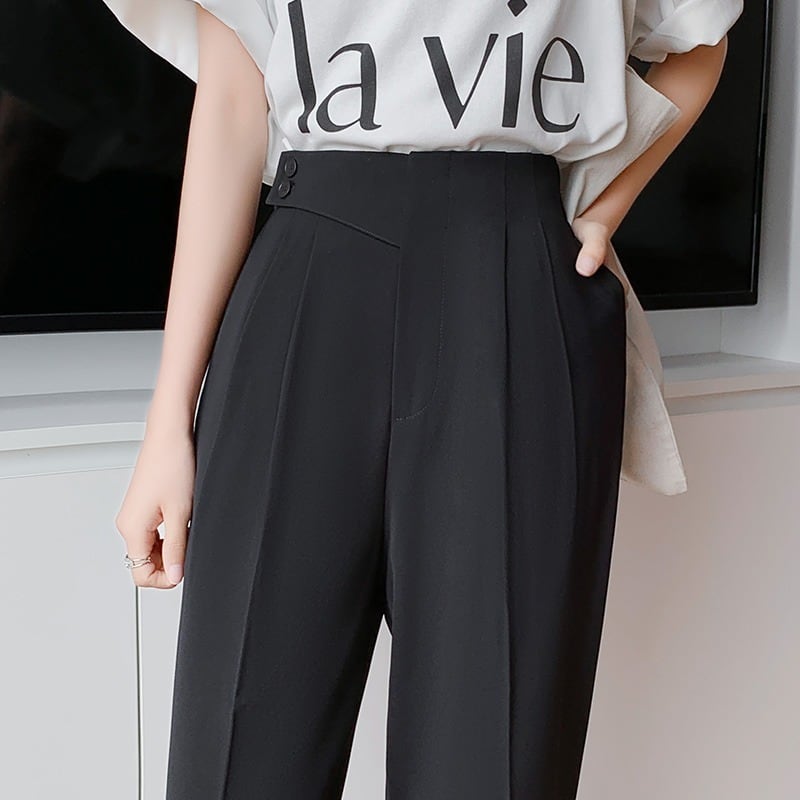 商品名:シンプル ハイウエスト クロップド丈 テーパードパンツ