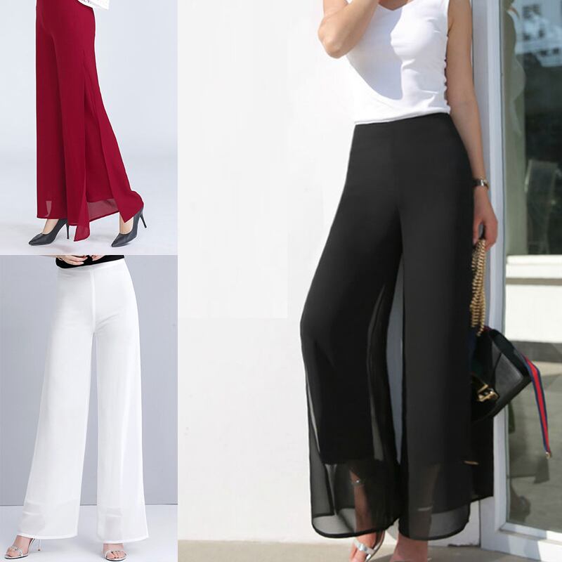 ワイドパンツ レディース 春夏 秋冬 春 夏 秋 冬 黒 ボトムス パンツ スリット ロングパンツ ガウチョパンツ リゾート 海 プール ハイウエスト シフォン シンプル きれいめ 大人 ブラック アイボリー 韓国ファッション OL カジュアル オフィスカジュアル オフィス OL ズボン スーツ C-PSS1027