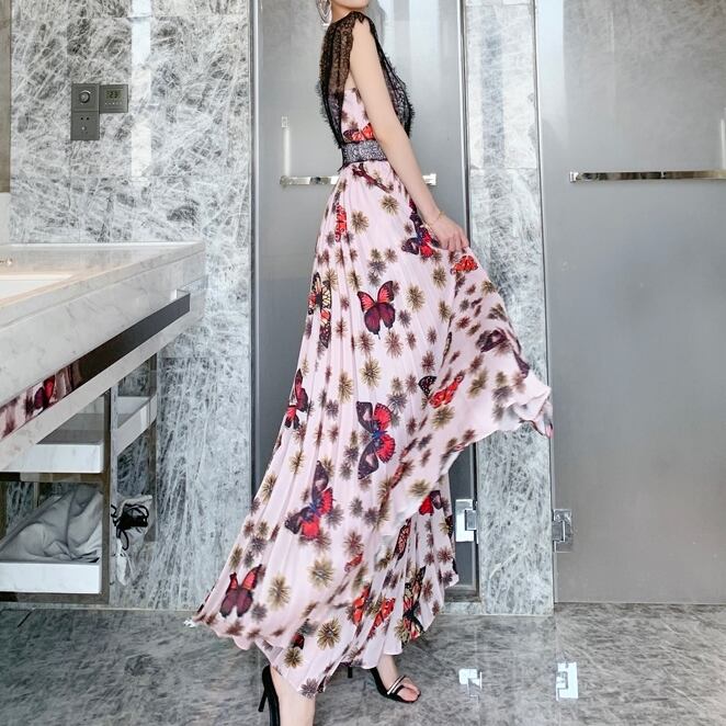 ワンピース レディース 春夏 秋冬 春 夏 秋 冬 花柄 蝶 ノースリーブ レース ドレス 花柄ワンピース マキシワンピース ワンピースドレス フラワー ロング丈ワンピ ドレスワンピース プリーツワンピース ロングワンピース ノースリーブ エレガント ピンク お呼ばれ 結婚式 パーティードレス ノースリーブワンピース 大人 カジュアル 10代 20代 30代 40代 C-OSS0068