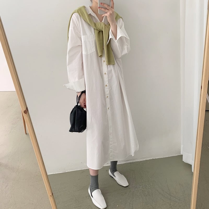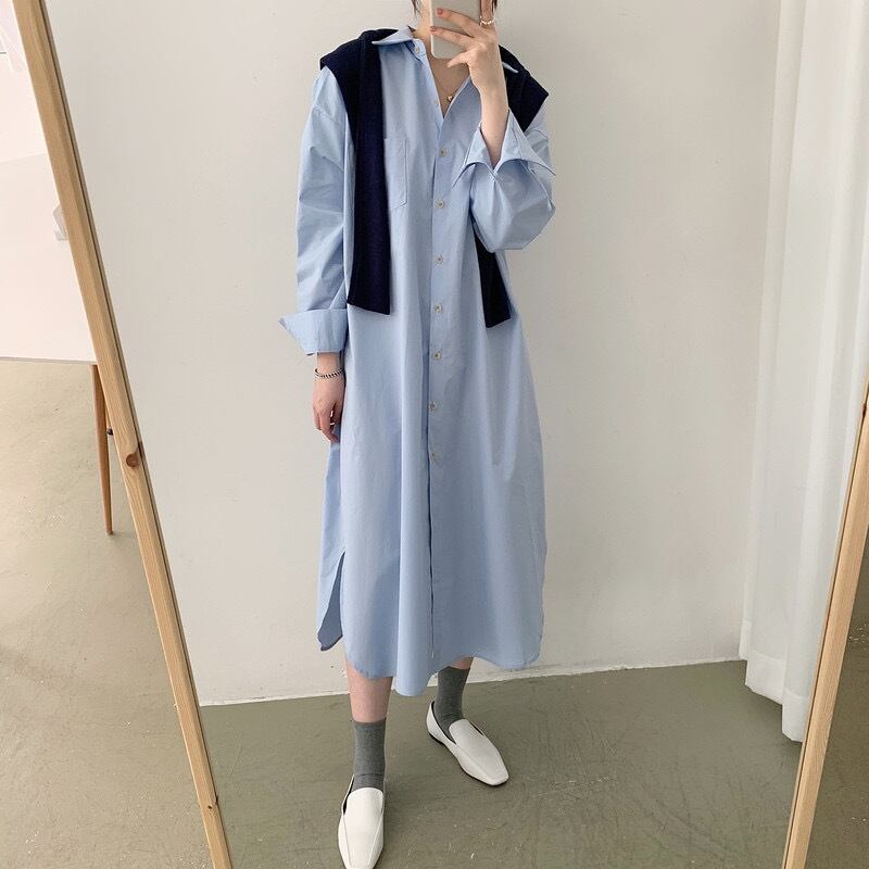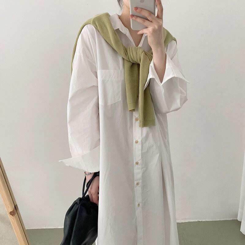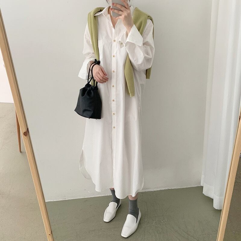 ロングワンピース レディース 春夏 秋冬 春 夏 秋 冬 白 黒 シャツワンピース ゆったり ロングシャツ ライトアウター ロング マキシワンピース 無地 楽チン ホワイト ライトブルー オフィスカジュアル きれいめ OL 10代 20代 30代 C-OSS0027