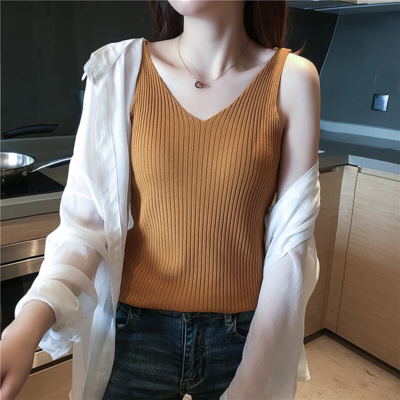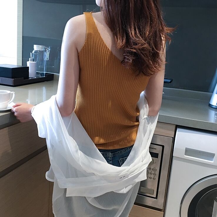 商品名:リブニット ノースリーブ Vネック タンクトップ