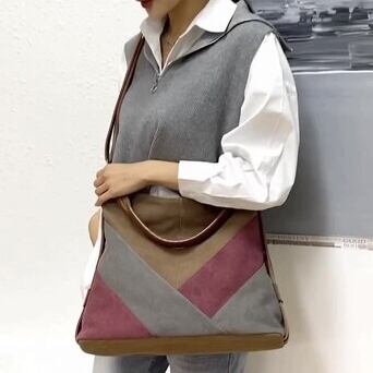 キャンバス地のハンドバッグ。