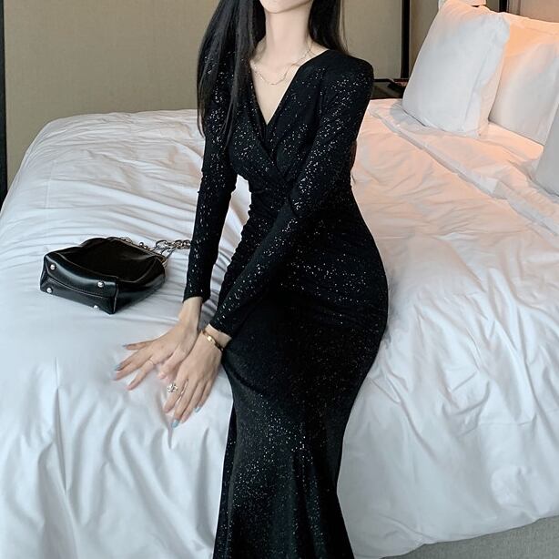 ロング丈のスカートとラメでパーティーシーンにピッタリ。
