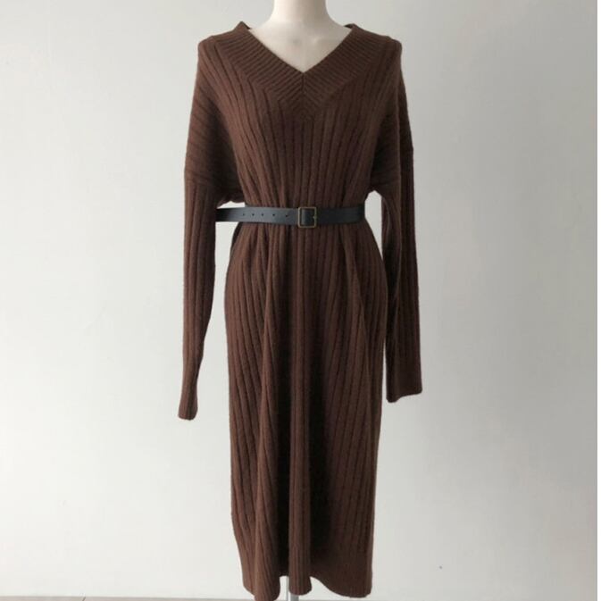 Vネック ニットワンピース C-OAW1025
