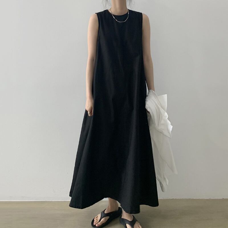 ロングワンピース レディース 春夏 秋冬 春 夏 秋 冬 白 黒 ノースリーブワンピース ゆったり ノースリーブ Aラインワンピース Aライン マキシワンピース 無地 楽チン ホワイト ブラック オフィスカジュアル きれいめ OL 10代 20代 30代 C-OSS0026