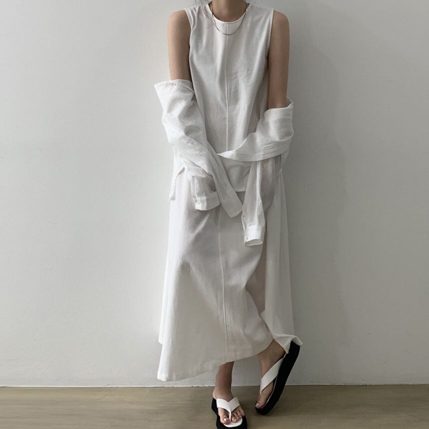 商品名:ラウンドネック ゆったりノースリーブ ロングワンピース