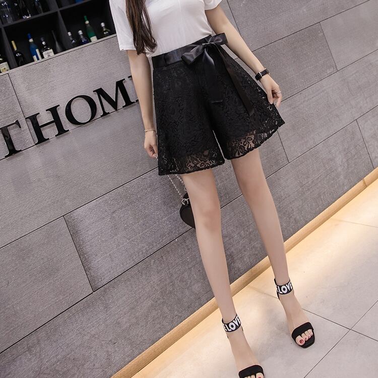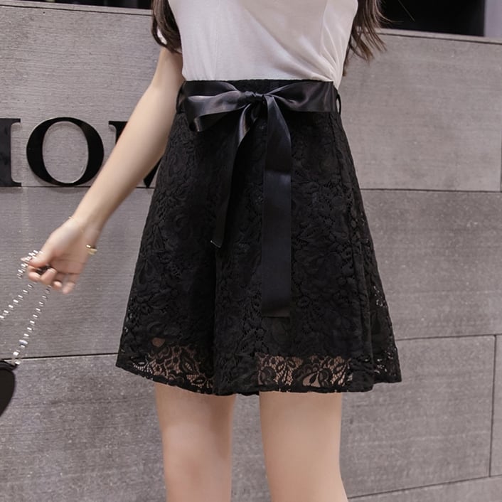商品名:総レース ショート丈 ハイウエスト リボン キュロットパンツ