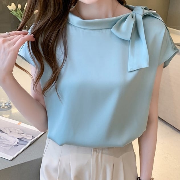 商品名:リボンネック フレンチスリーブ 半袖ブラウス