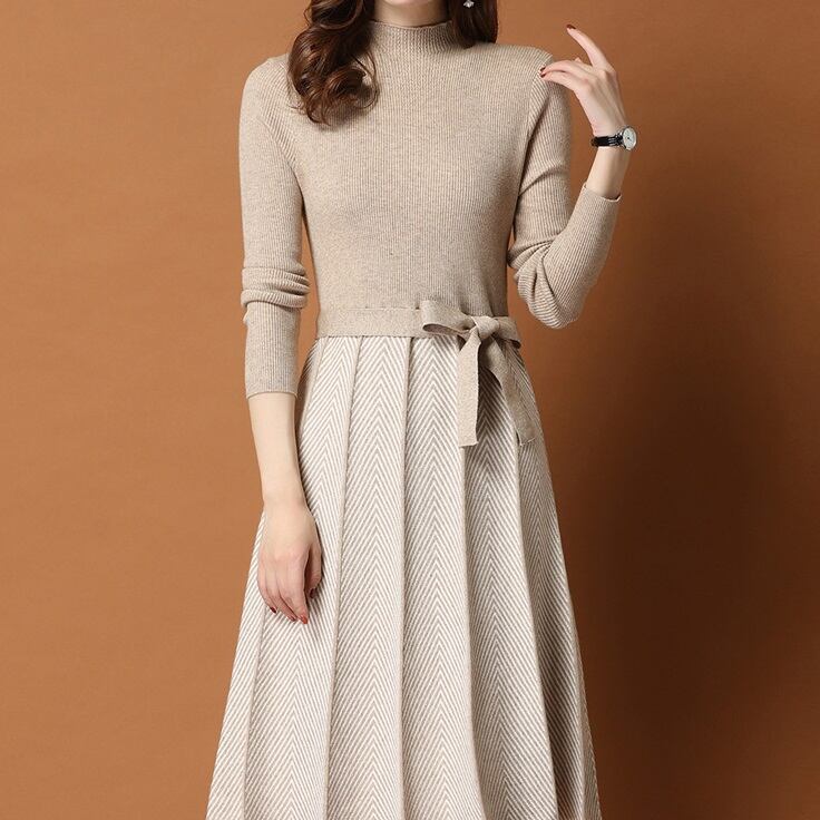 ワンピース レディース 春夏 秋冬 春 夏 秋 冬 長袖 黒ワンピース Aラインワンピース ミディアムワンピース ロング ミモレ丈 ニットワンピース ハイネック シンプル ひざ丈ワンピ Aライン プリーツ ブラックワンピース ロングワンピース カジュアルワンピ ブラック ベージュ ブラウン ネイビー デート きれいめ 韓国 ファッション OL オフィスカジュアル 結婚式 パーティー お呼ばれ 10代 20代 30代 40代 C-OSS0100