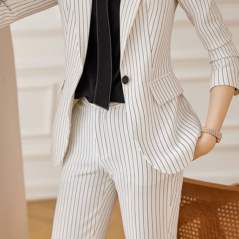 パンツスーツ レディース 春夏 秋冬 春 夏 秋 冬 黒 白 スーツ ストライプ 上下セット 2点セット ジャケット パンツ セットアップ ツーピース 長袖 シングル タイト ビジネススーツ タイト パンツスーツ ロングパンツ 韓国ファッション リクルートスーツ レディーススーツ 韓国 大きいサイズ オフィス OL オフィスカジュアル ビジネス 結婚式 パーティー お呼ばれ ブラック ホワイト ネイビー S M L XL 2XL 3XL 4XL 10代 20代 30代 40代 C-WAW1083
