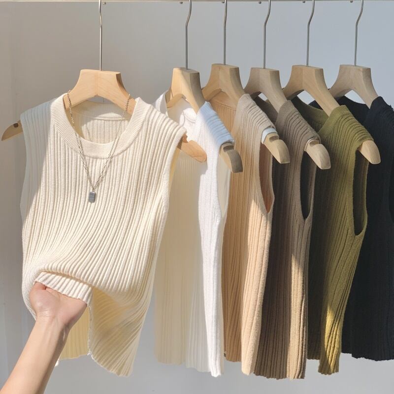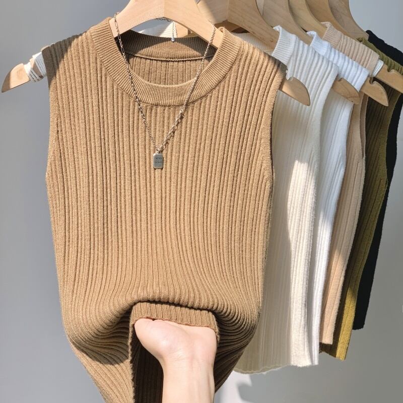 ニット ノースリーブニット レディース 春夏 秋冬 春 夏 秋 冬 黒 白 リブニット リブ タイトニット 袖なしニット トップス ノースリーブ OL きれいめ タイト 韓国 ファッション オフィスカジュアル 韓国風 上品 ホワイト アイボリー マスタード ベージュ ピンクキャメル ブラック 大人 カジュアル 10代 20代 30代 40代 C-TSS0067